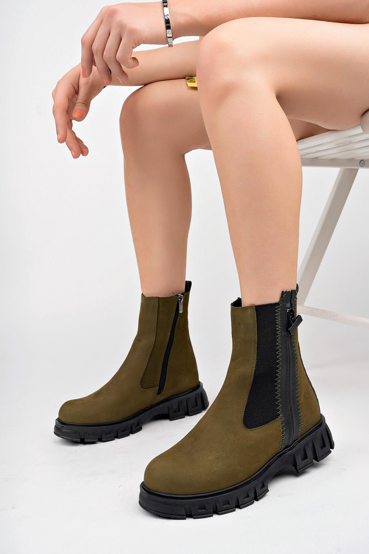 Hakiki Deri Haki Nubuk Kadın Deri Bot DP73-6001