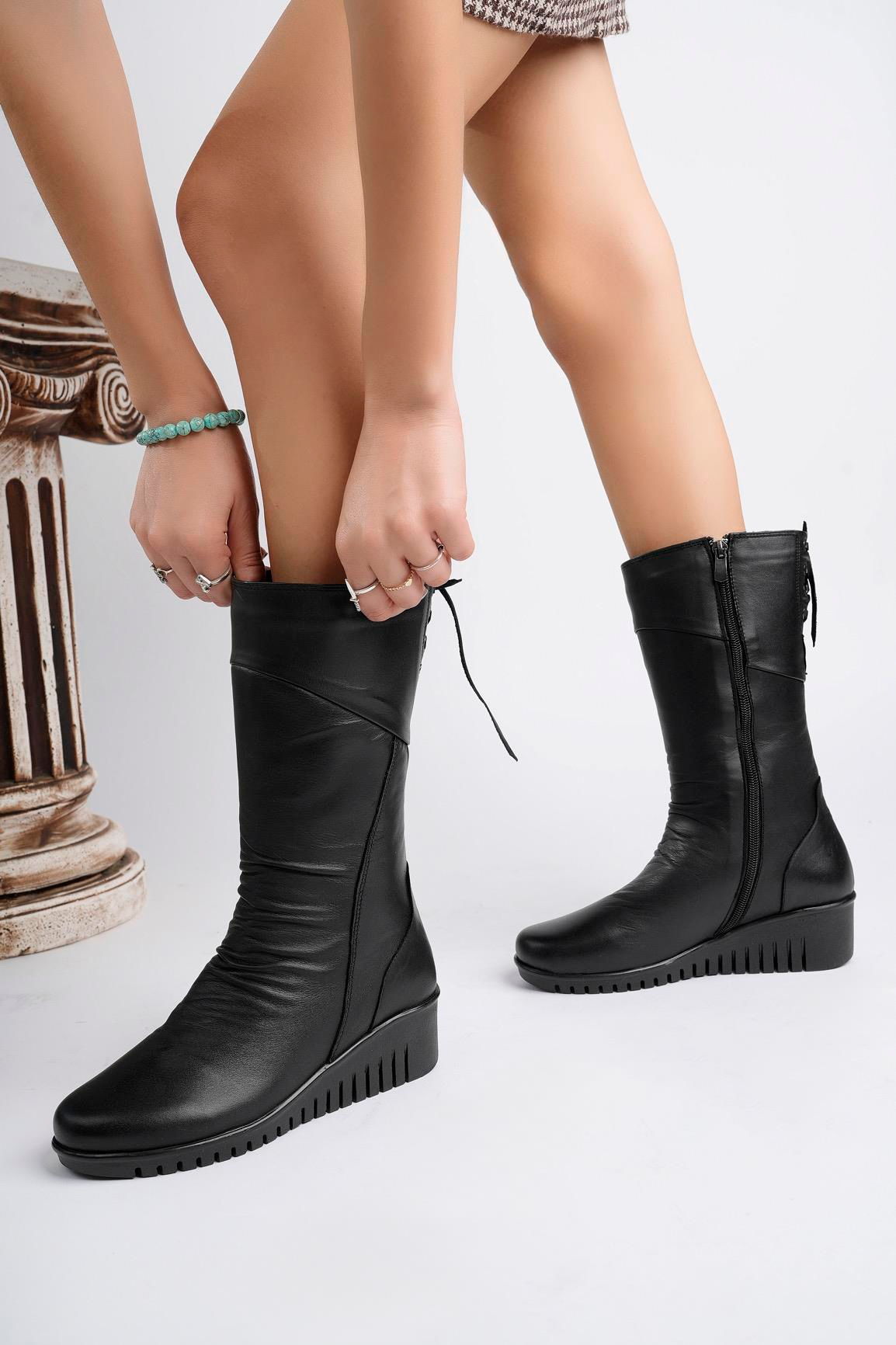 Hakiki Deri Siyah Kadın Deri Çizme Trc-1600
